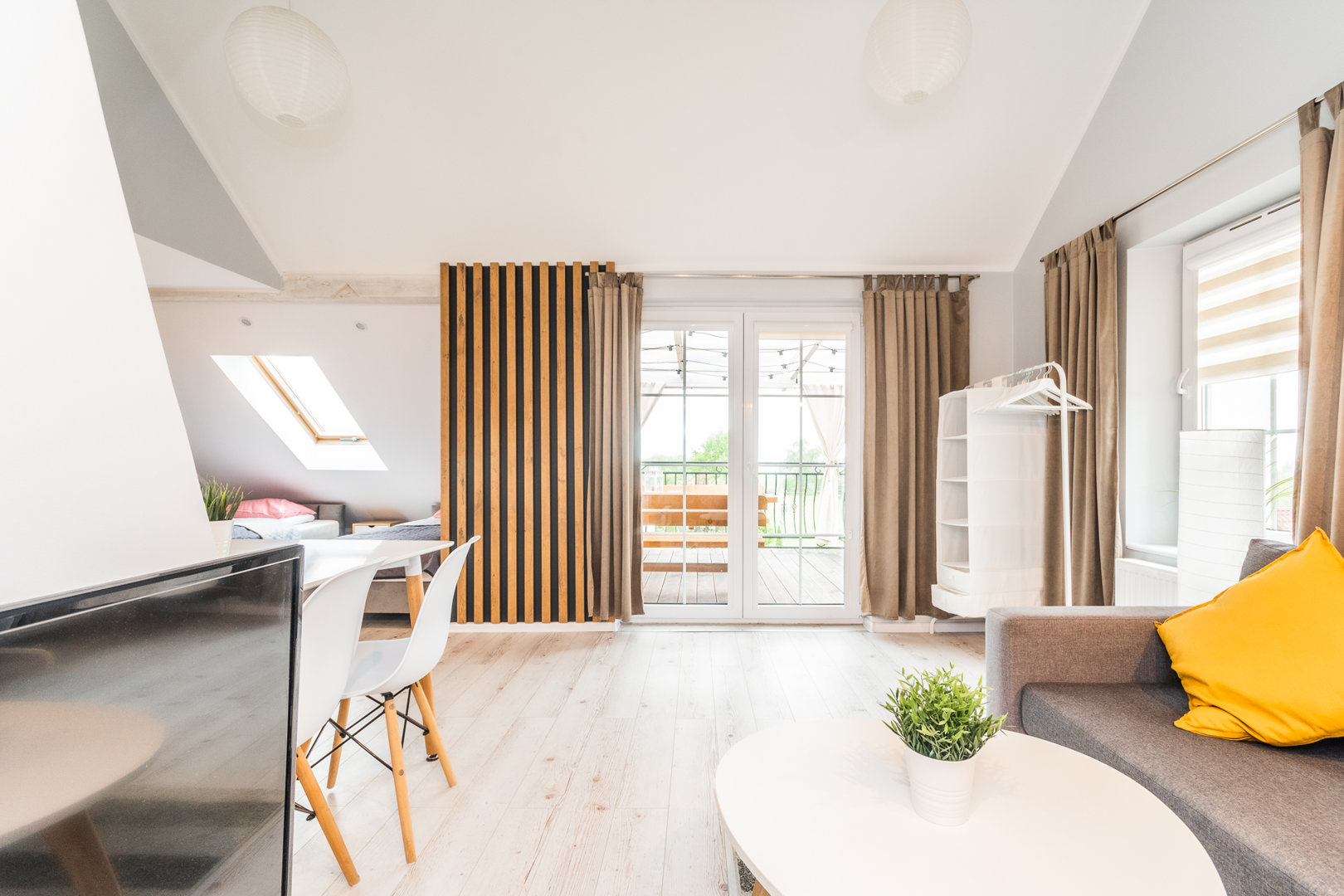 Apartament 70 m2 z 2 sypialniami, dużym tarasem i sauną.