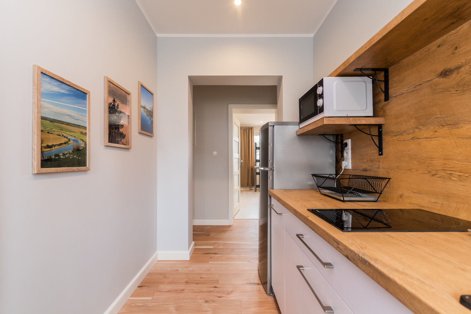 -aneks kuchenny: 2 palnikowa płyta indukcyjna, mikrofalówka, duża lodówka, zlewozmywak, garnki, naczynia, talerze, sztućce, lampki do wina, kieliszki itp.