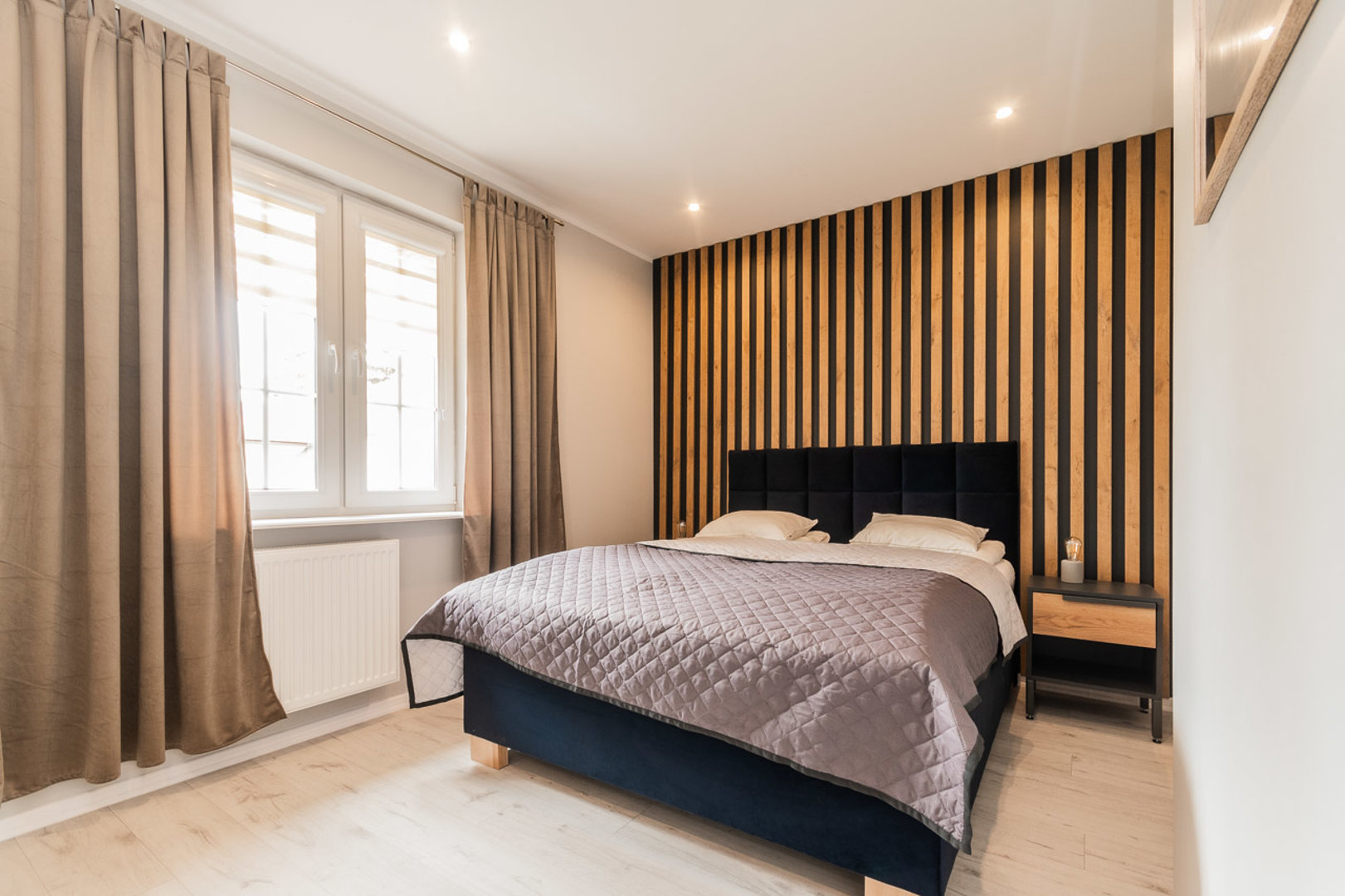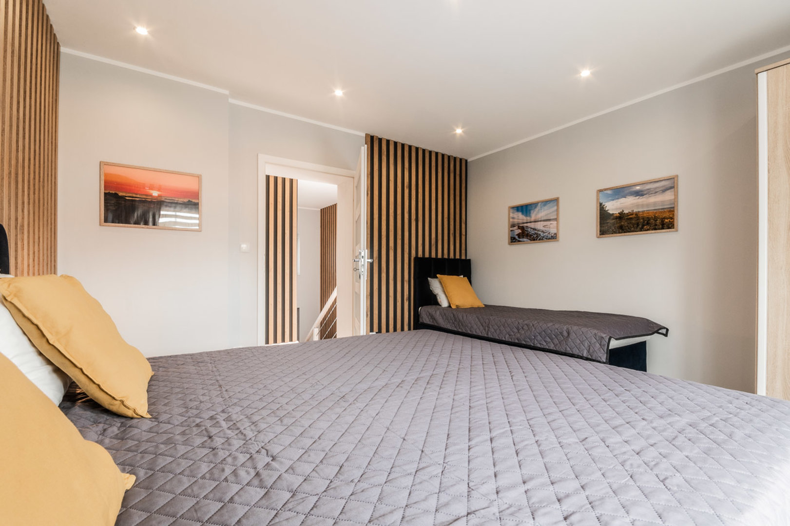 -sypialnia 2 z południowym balkonem: łóżko 180 x 200 oraz łóżko 90 x 200.