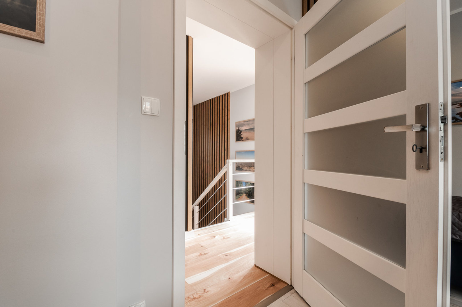 Atutami są również przestronność i swoboda, niezależne wejście, bardzo duża działka, basen pod domem oraz fakt iż w budynku znajdują się jedynie trzy apartamenty (każde piętro stanowi osobny apartament).