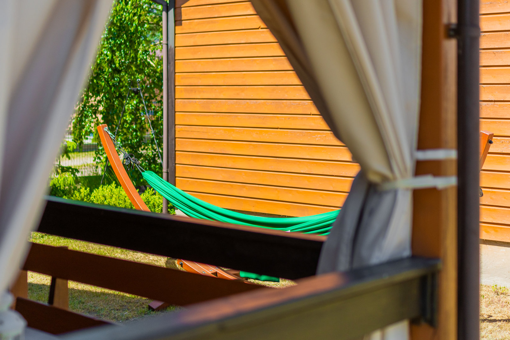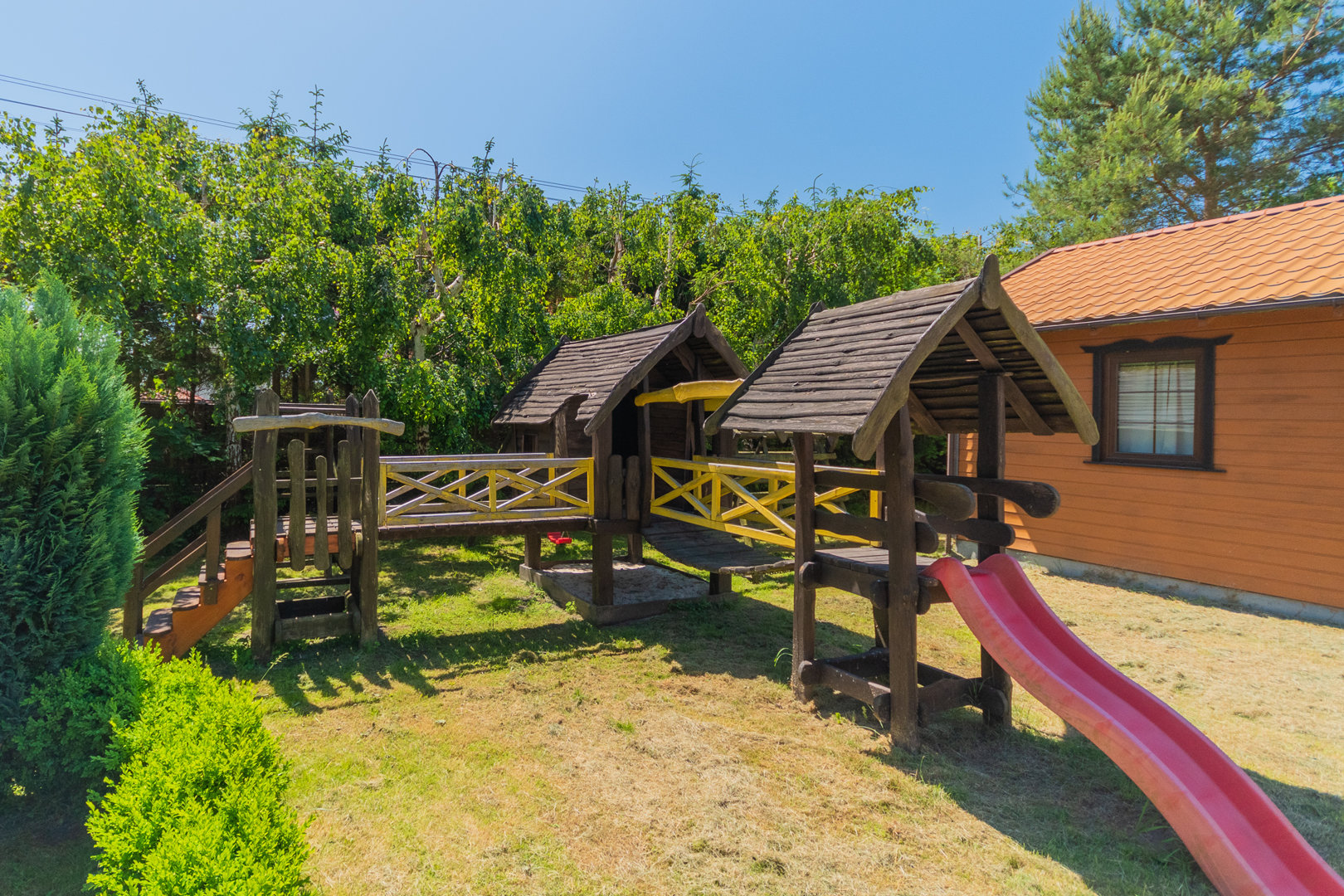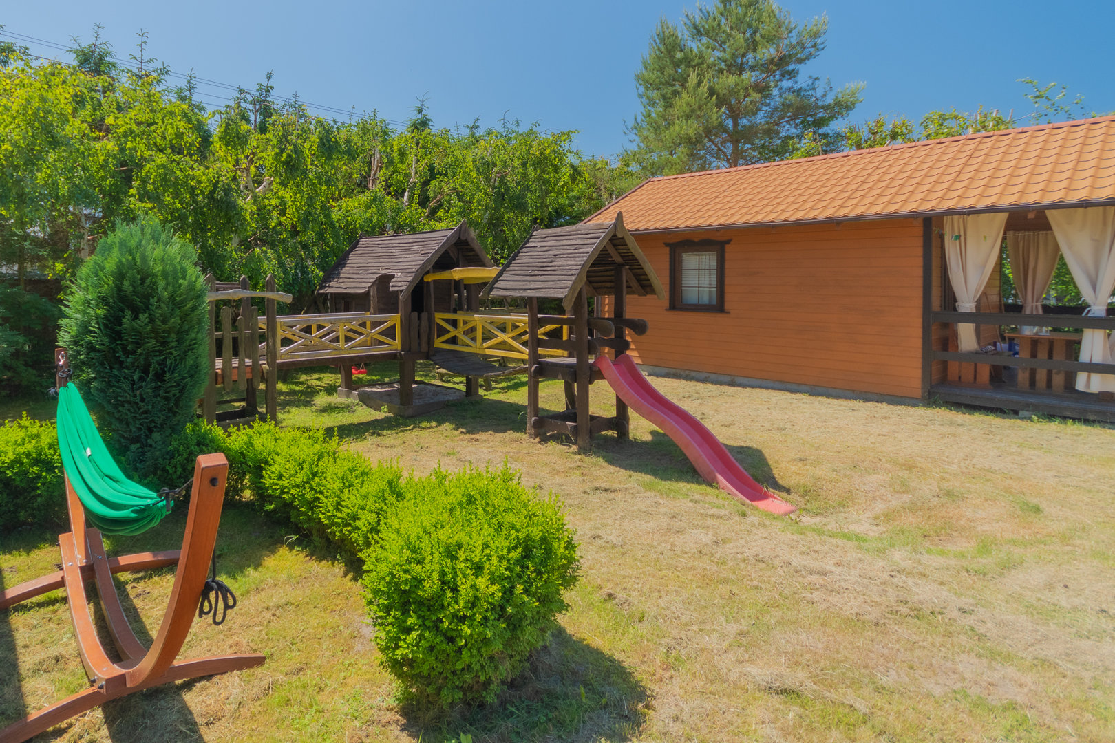 Apartament numer 1 z sauną ma powierzchnie 80 m². Znajduje się w budynku stojącym przy basenie. Stanowi cały parter tego budynku. Posiada niezależne wejście bezpośrednio z zewnątrz.