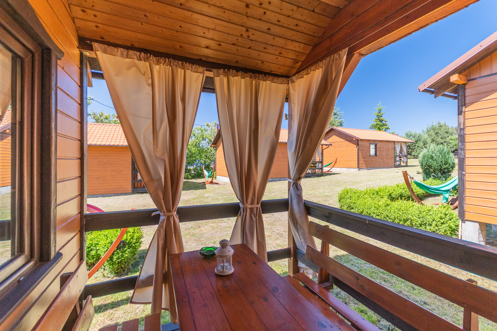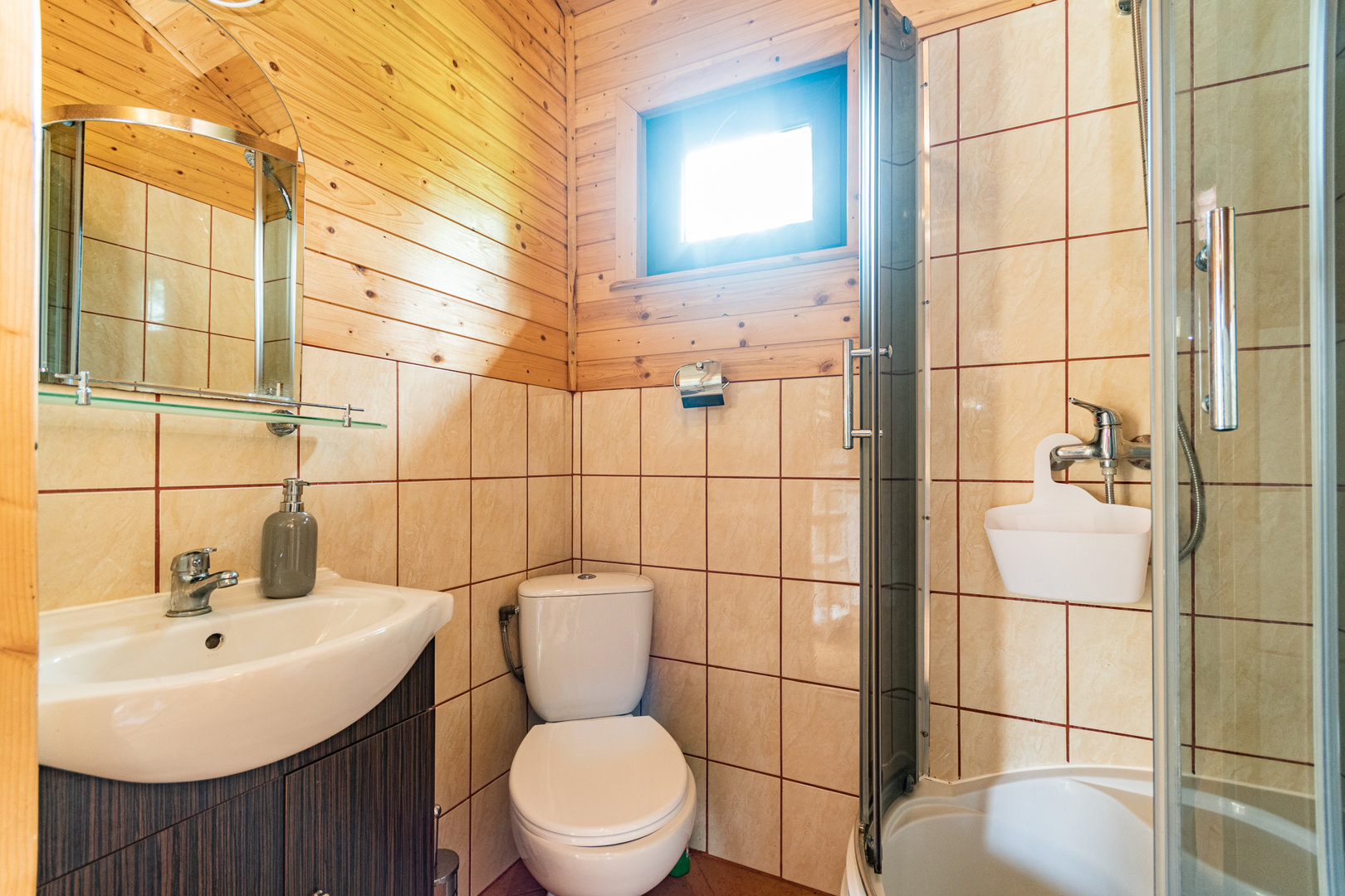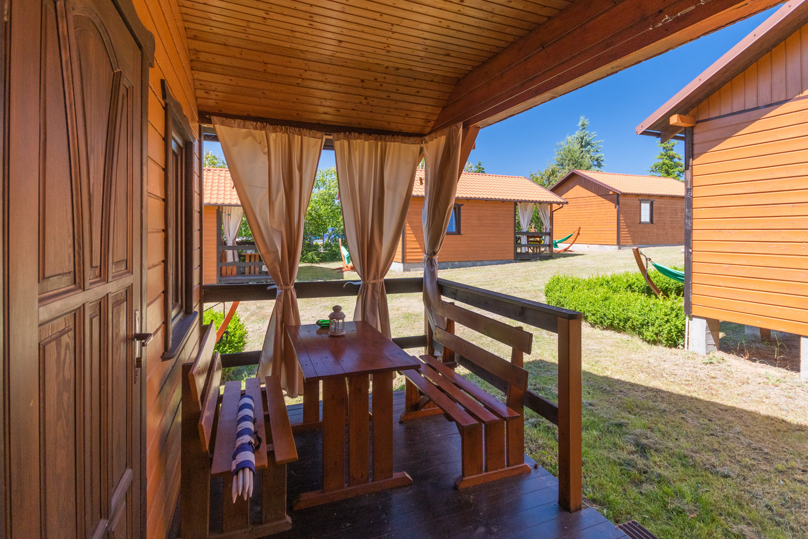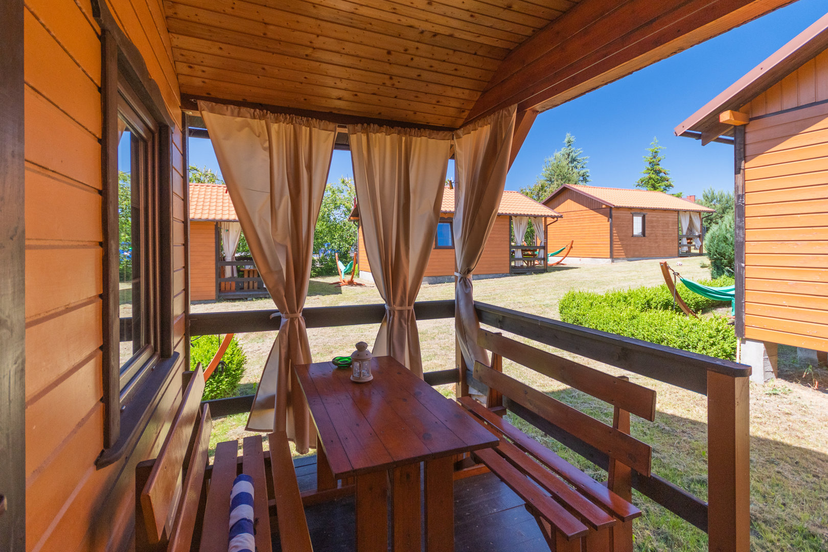 Apartament numer 1 z sauną ma powierzchnie 80 m². Znajduje się w budynku stojącym przy basenie. Stanowi cały parter tego budynku. Posiada niezależne wejście bezpośrednio z zewnątrz.